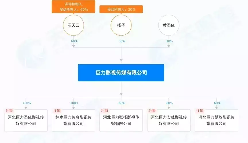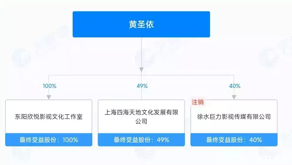 天眼查App显示,黄圣依与杨子共同关联6家企业,仅巨力影视传媒有限公司、上海四海天地文化发展有限公司2家为存续状态。